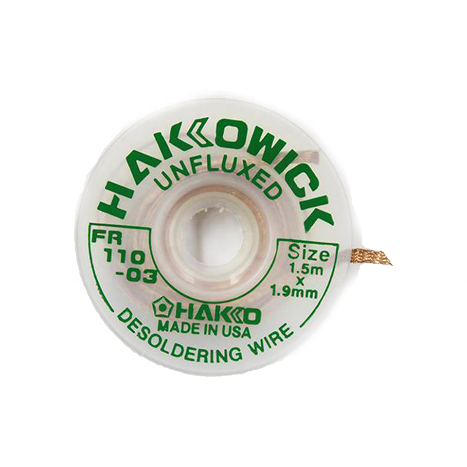 ลวดดูดตะกั่วแบบไม่มีสารเคลือบ FR110 สำหรับงานดั้งเดิม ประหยัด ใช้งานง่าย ปลอดภัยจากไฟฟ้าสถิต ได้มาตรฐาน RoHS ความยาว 1.5 ม. ความกว้าง 0.7-3 มม.