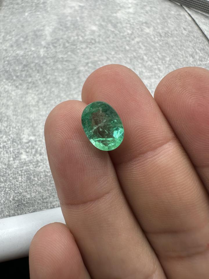 2.92พลอยเทียมทรงรีตัดทรงไข่หยกธรรมชาติสีเขียวอัลไพน์ไม่ผ่านการบำบัด