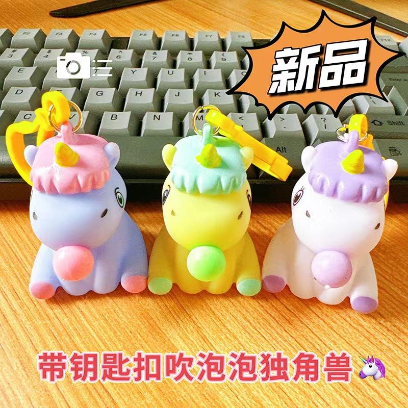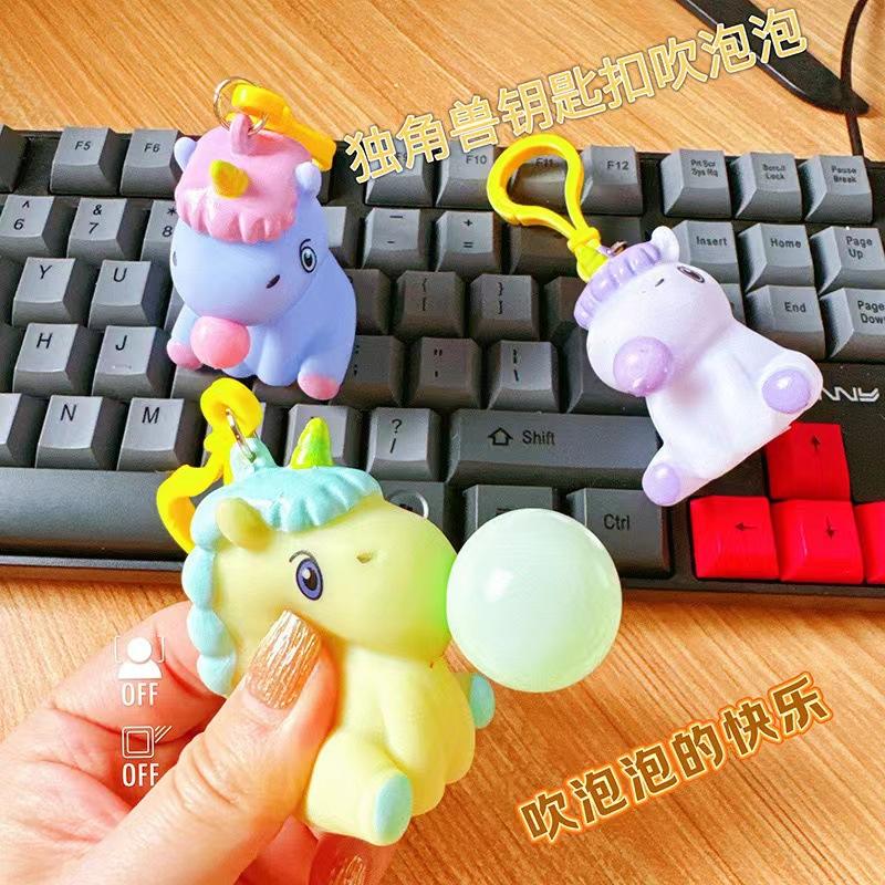 พวงกุญแจเป่าฟองสบู่รูปยูนิคอร์น พลาสติกการ์ตูน พกพาสะดวก ใช้กับกระเป๋าหรือพวงกุญแจ