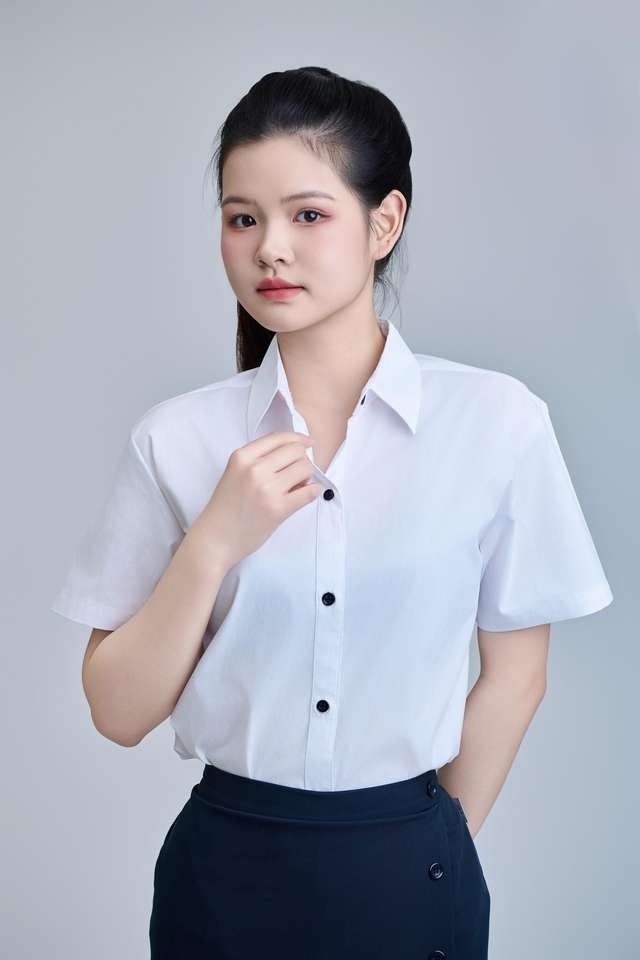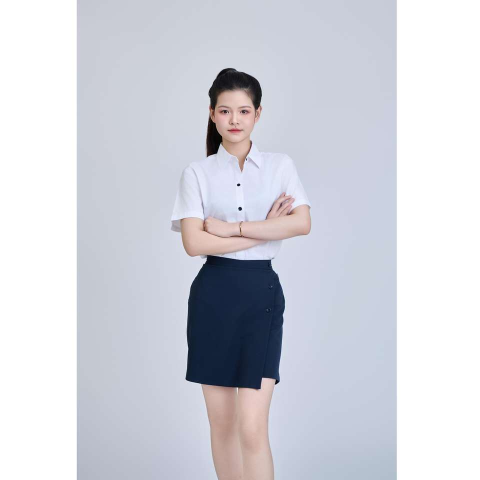 เครื่องแบบนักเรียนมัธยมต้น FMF เสื้อแขนสั้นสีขาวนักเรียนชายหญิงรอง (น้ำเงิน)