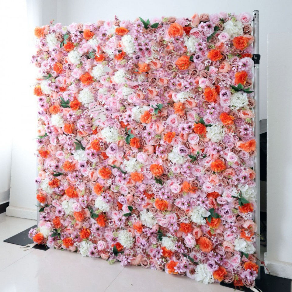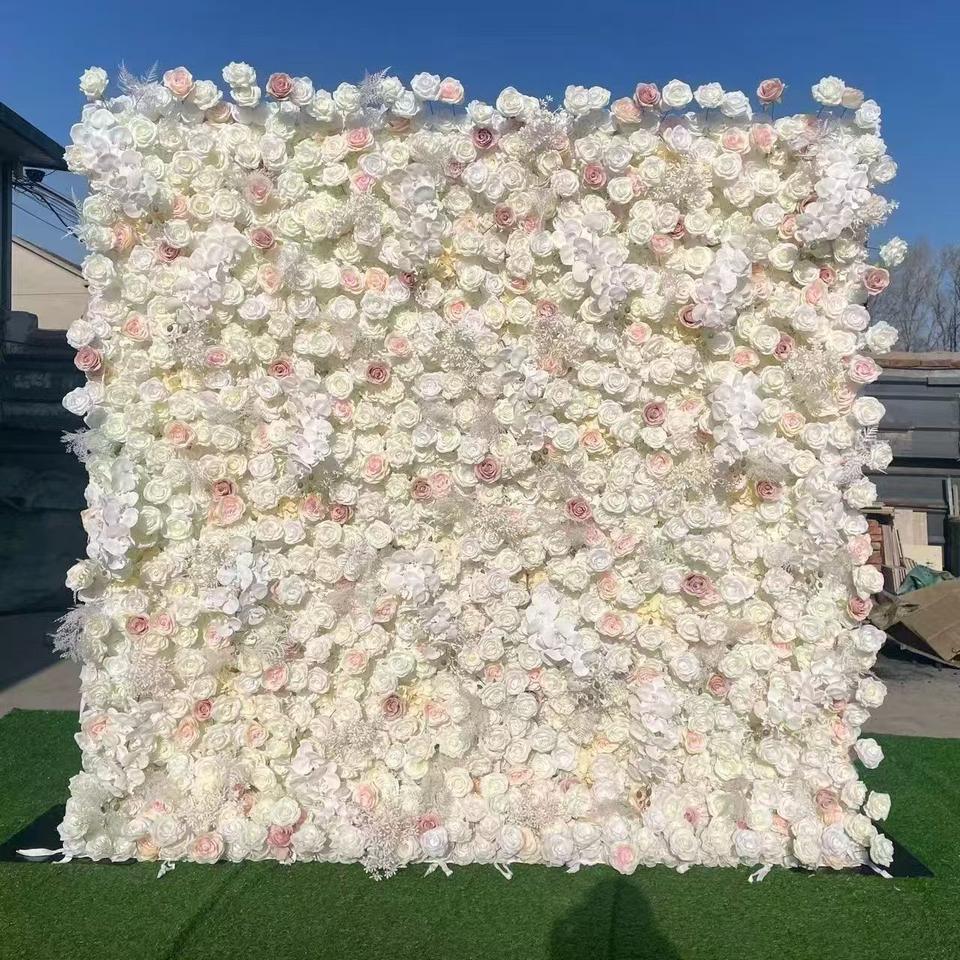แผงผนังดอกไม้แบบม้วน ตกแต่งฉากหลังงานแต่งงาน งานเลี้ยงต้อนรับ จัดวางดอกไม้แบบสม่ำเสมอ