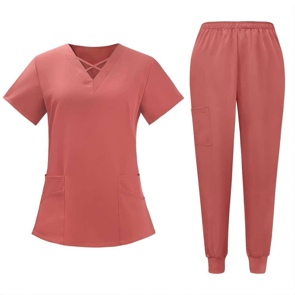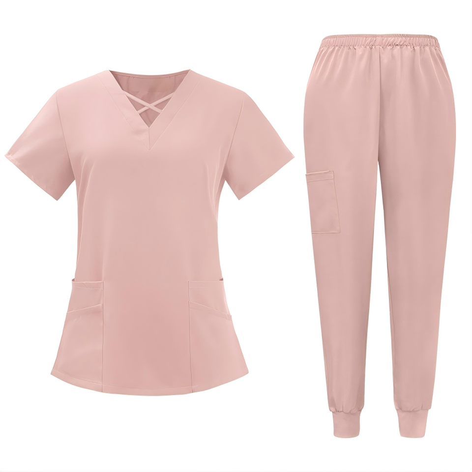 ชุดยูนิฟอร์มคอจีน เสื้อ+เลกกิ้ง แบบสั่งทำพิเศษ สำหรับร้านเสริมสวย ชุดสครับ และชุดทำงานสปา