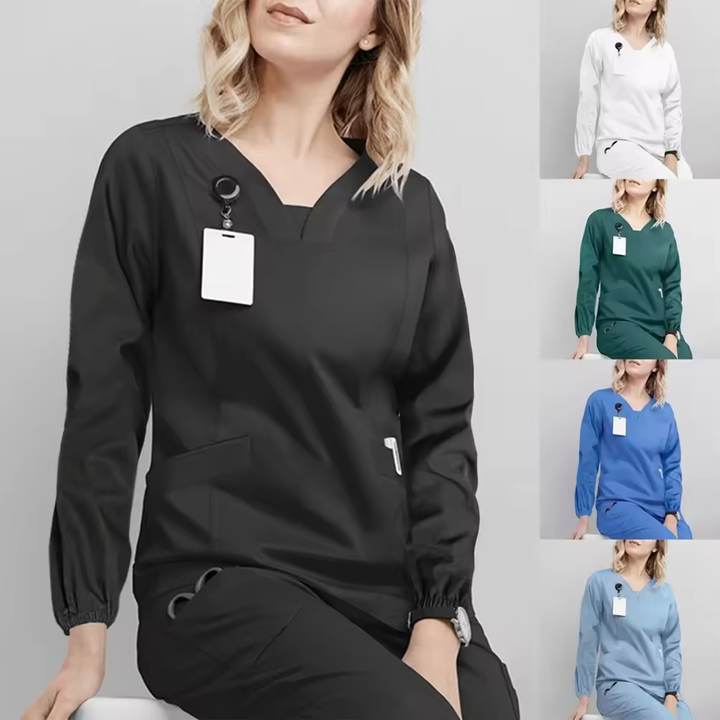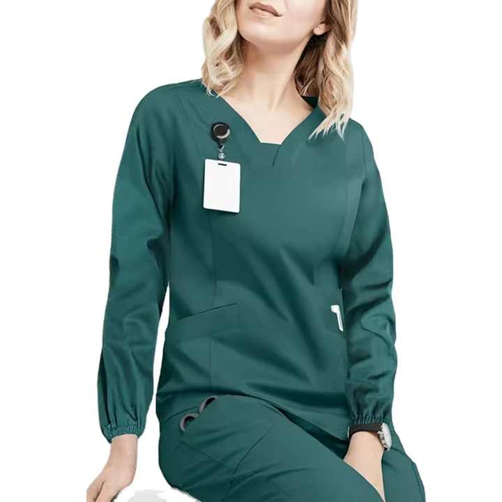 ชุดยูนิฟอร์มเครื่องแบบโรงพยาบาลชุดเครื่องแบบสครับคอปกตั้งแขนสั้นพยาบาลและพยาบาลหญิง