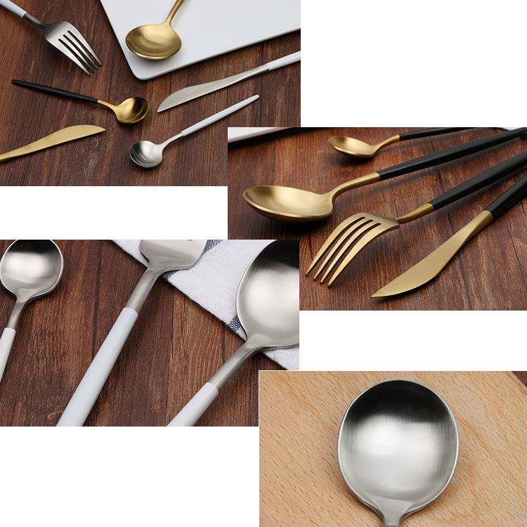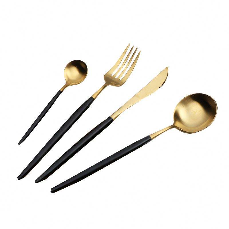 ชื่อผลิตภัณฑ์:ช้อนส้อมมีดด้ามจับสีดำทำจากทองแดงทำจาก304สแตนเลส
