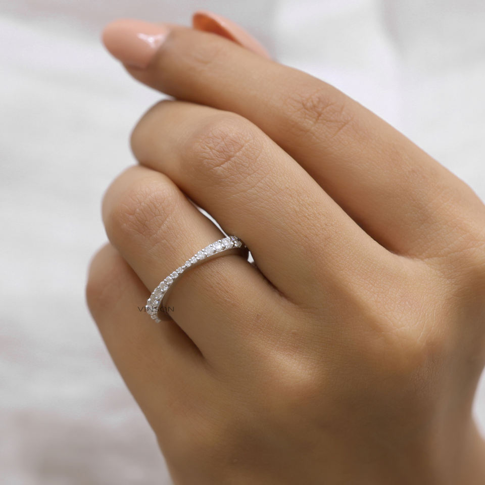 แหวนเพชรโมอิสทรงเรียวเล็ก0.30ไม่เหมือนใครสำหรับงานแต่งงานครึ่งนิรันดร์วงแหวนซ้อนกันได้