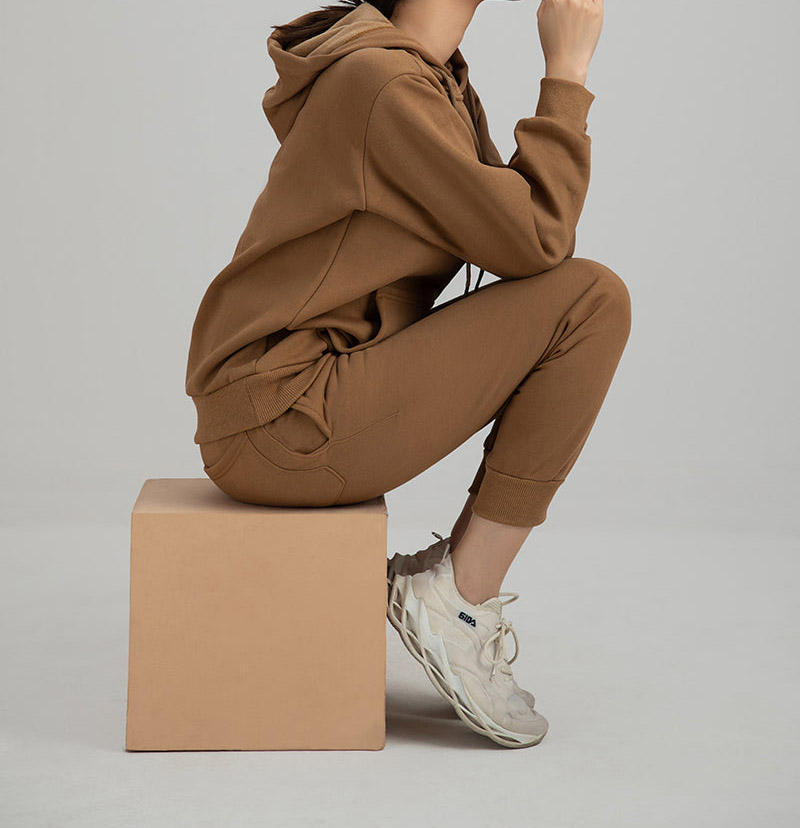 ชุดจ๊อกกิ้งผ้าฝ้ายยาวโอเวอร์ไซส์เปิดไหล่ของผู้หญิงชุดวิ่งลำลองระบายอากาศได้ดีใส่สบายฤดูใบไม้ร่วง