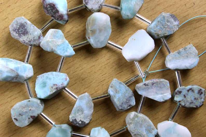 พลอยลาริมาร์ธรรมชาติไม่ซ้ำใคร21ชิ้น,อัญมณีทรงไม่สม่ำเสมอเครื่องประดับหินสีฟ้าคอลเลกชันสไตล์ผู้ค้าส่ง