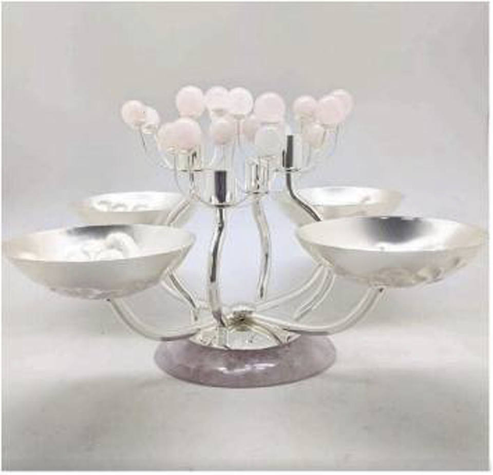 ชามเสิร์ฟช็อกโกแลต4ส่วนพร้อมฐานเรซินสำหรับบ้านโรงแรมและร้านอาหารชามเสิร์ฟพร้อมลูกบอลเรซินสีเงิน