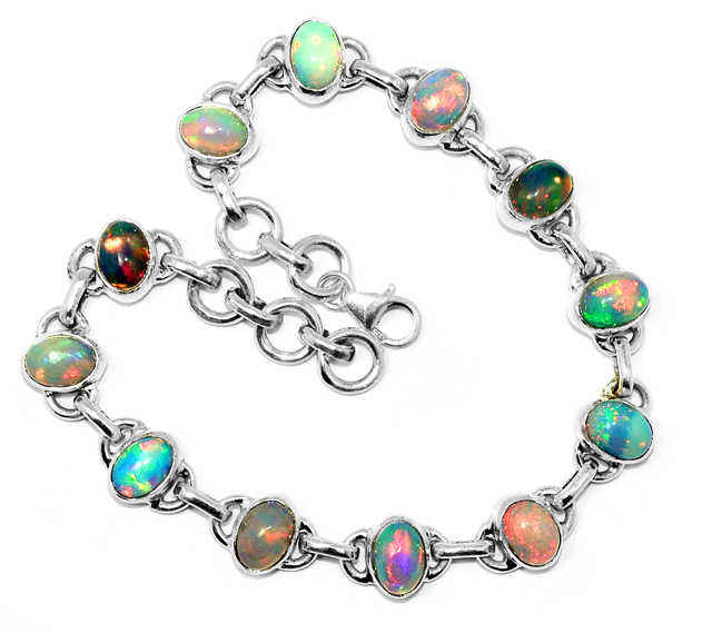 กำไลข้อมือเงินแท้925มีเอกลักษณ์ทำด้วยมือพลอยโอปอลเอธิโอเปียนธรรมชาติน้ำหนักเบาเครื่องประดับสำหรับเป็นของขวัญ