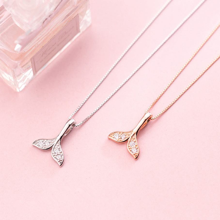 จี้ห้อยรูปหางปลาประดับเพชรซิรคอนชุบทองและโรเดียมเงินแท้ 925 ดีไซน์พิเศษ-ของขวัญ