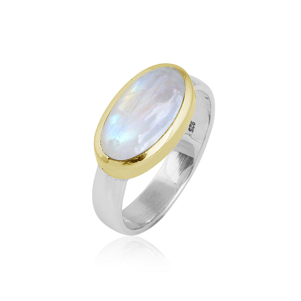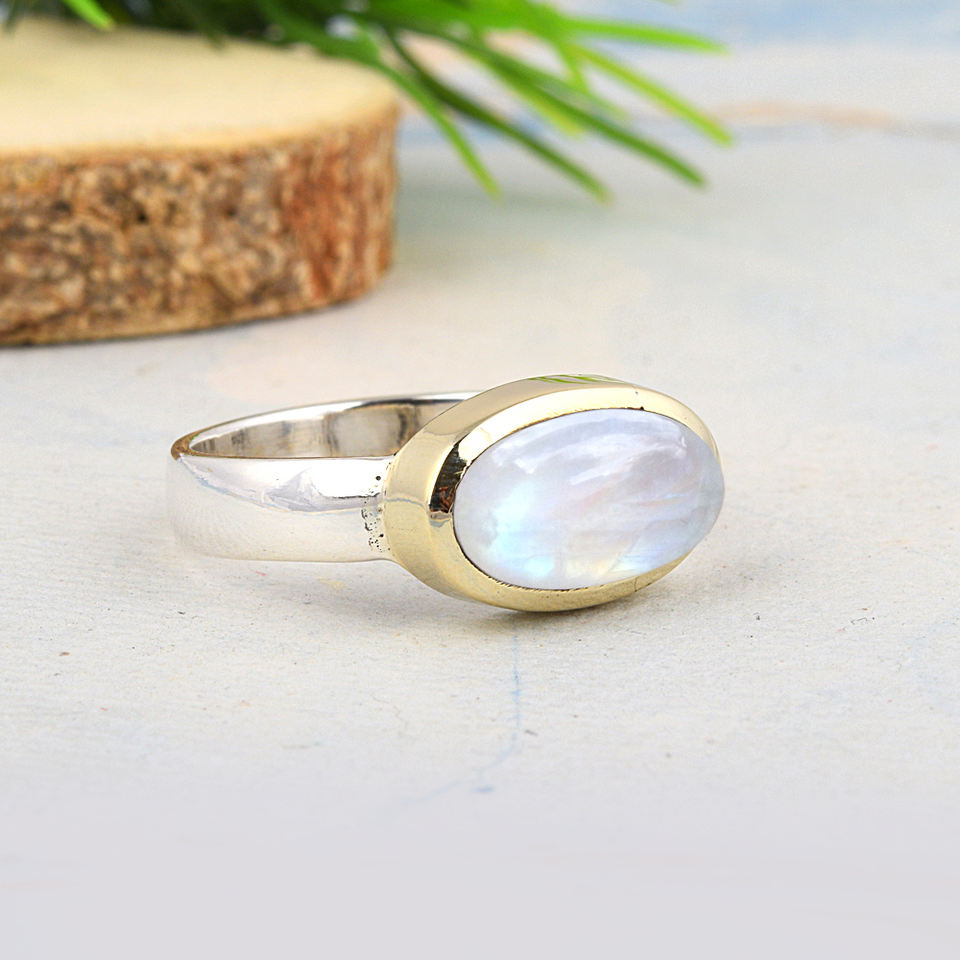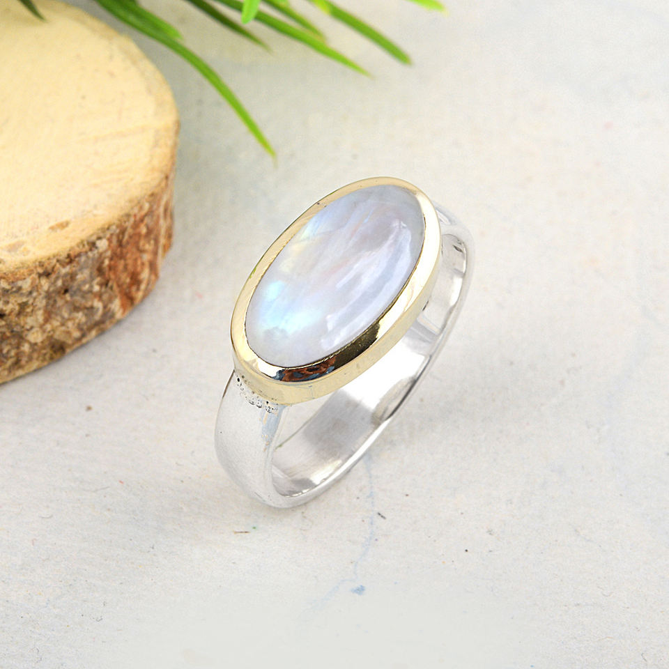 แหวนเงินแท้ไม่เหมือนใครลาย925มูนสโตนทรงรีสไตล์มินิมอลเครื่องประดับสำหรับงานแต่งงานทันสมัยเครื่องประดับสำหรับขายส่ง