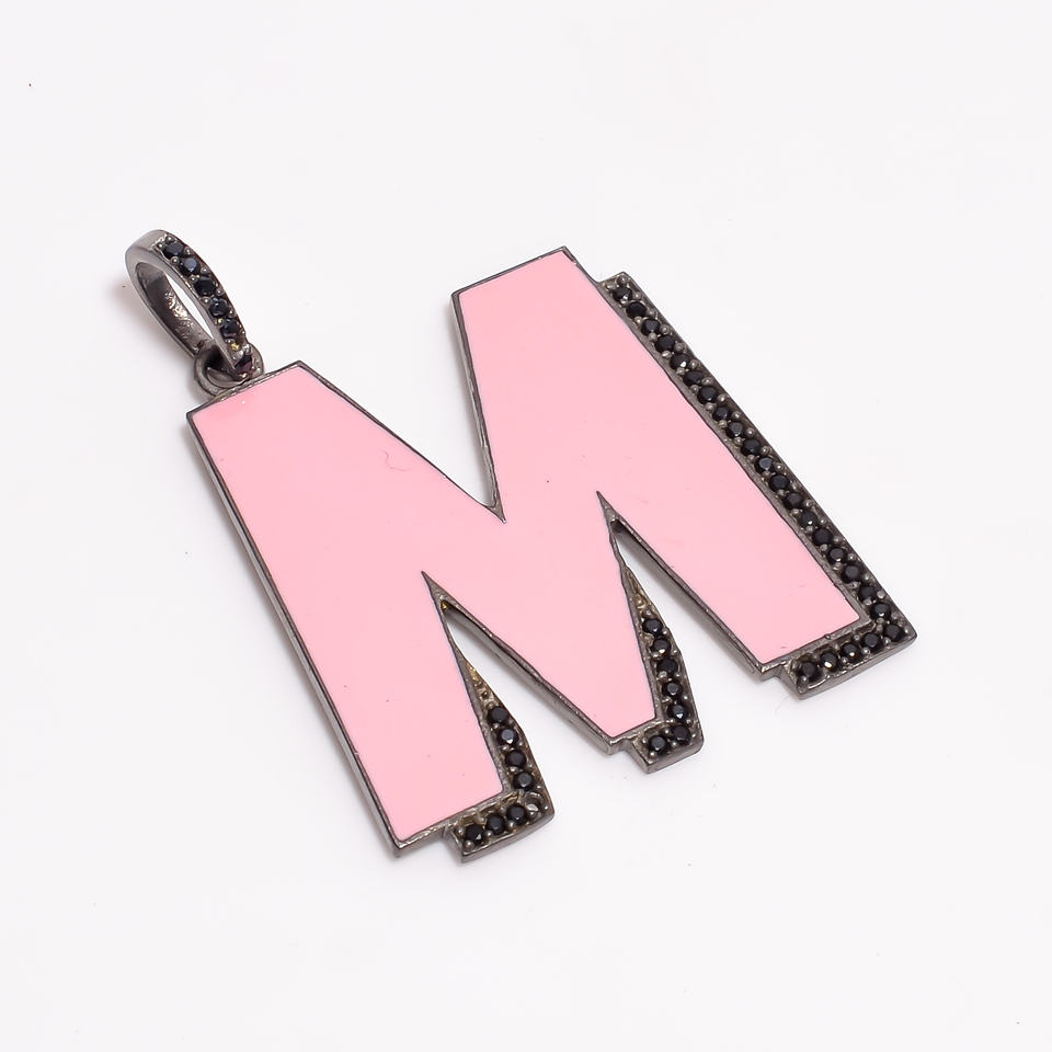 925พลอยสปินเนลธรรมชาติสีดำขนาด AAA + คุณภาพ100% จี้สีดำชุบเงินแท้จี้รูปตัว M และเครื่องประดับสุดมีเสน่ห์