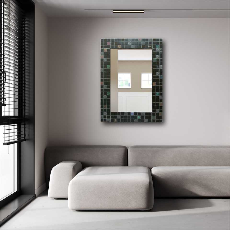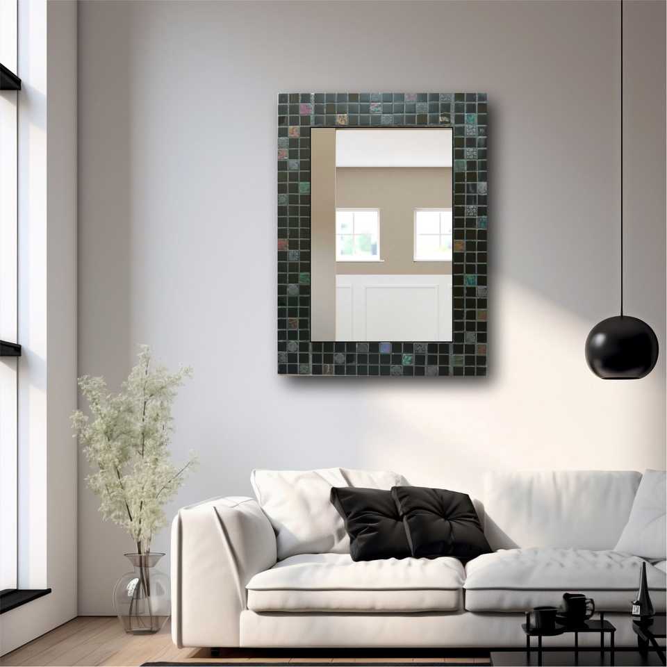 กระจกติดผนังโมเสคสีดำงานฝีมือสุดพิเศษ ขนาด 32x24 นิ้ว คุณภาพพรีเมียม ให้ความรู้สึกหรูหรา งานหินทำมือ งานฝีมือหินด้านระดับพรีเมียม