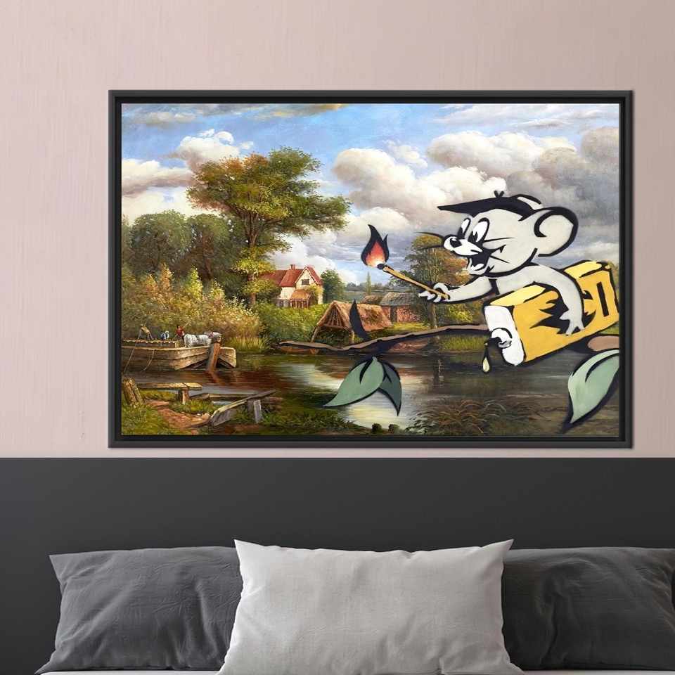 ภาพพิมพ์บนผ้าใบลาย Banksy Corrupted Oil Jerry ของแท้ พร้อมกรอบสีดำ 1 ชิ้น