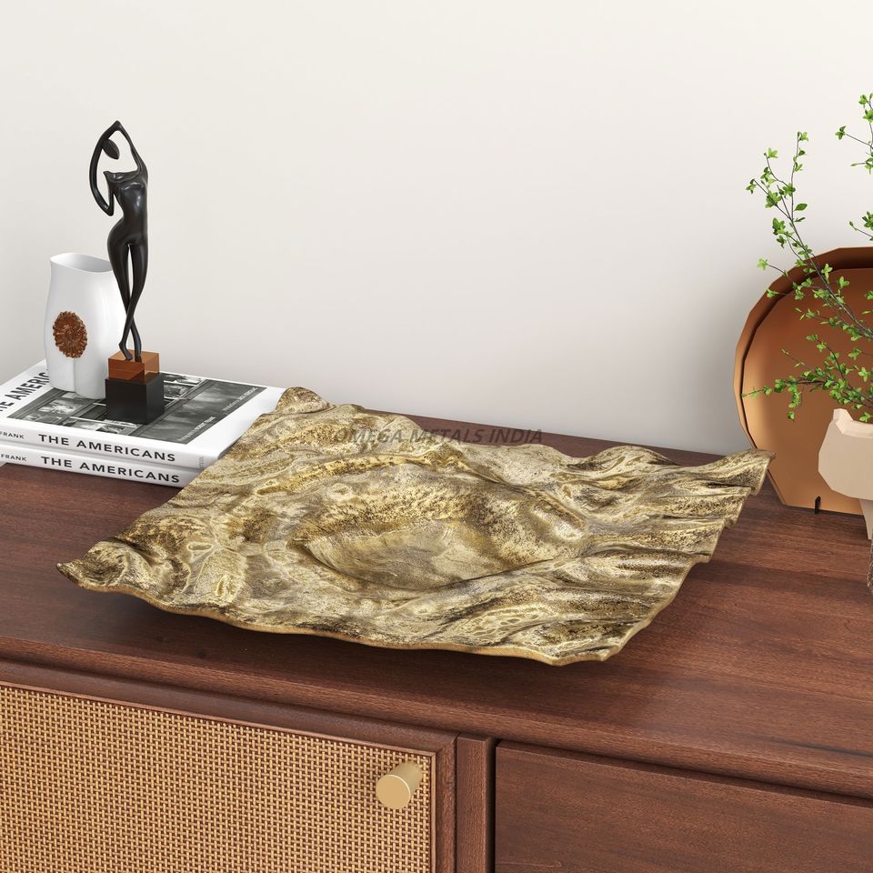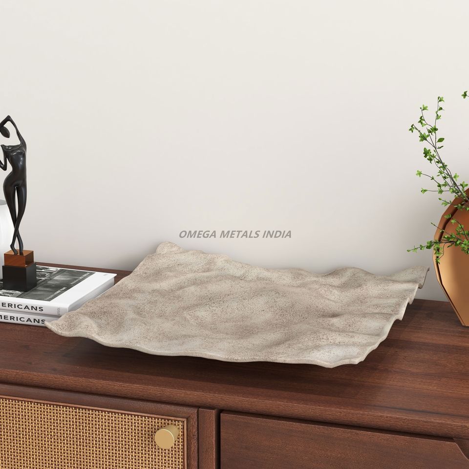 ถาดเสิร์ฟลายคลื่นสีเบจที่มีพื้นผิวไม่เหมือนใครเหมาะสำหรับการตกแต่งบ้านที่ทันสมัยและโซลูชันความบันเทิงที่หรูหรา