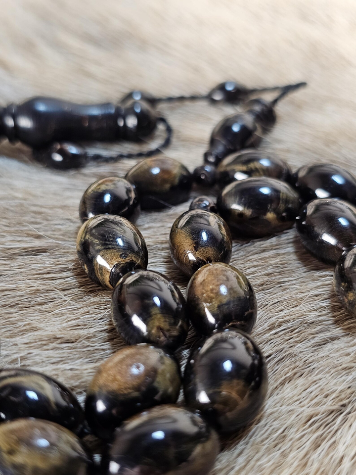 ลูกประคำปะการังดำหายากจากทะเลแดง | ลูกประคำยูร์หายากประดับด้วยปะการังสีทอง | งานฝีมืออียิปต์แบบดั้งเดิม