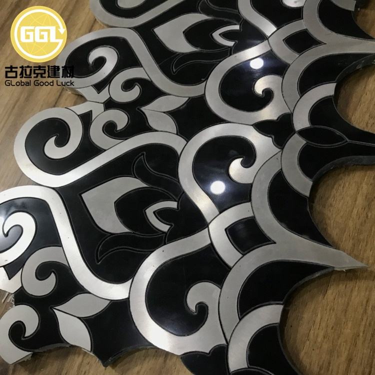 Product Name:Black Marble Mixed Stainless Steel Waterjet Mosaic Tiles for Bar Entry