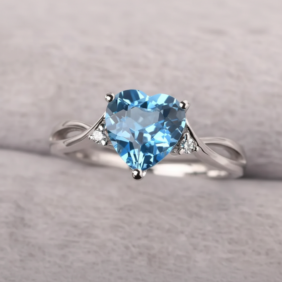 แหวนเงินรูปหัวใจบุษราคัมสีฟ้าที่ไม่เหมือนใครในเงินสเตอริงเป็นประกายสง่างามของขวัญเหนือกาลเวลาสำหรับเธอ