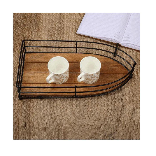 ถาดไม้มะม่วงดีไซน์เฉพาะเรือเคลือบสีดำสำหรับใส่ชาและเครื่องดื่ม