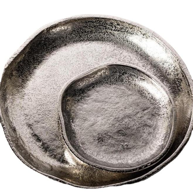 ชามที่ไม่ซ้ำกันให้บริการชุดใช้เครื่องครัวบ้านโรงแรมร้านอาหารผลไม้แห้งแฮนด์เมดเงินอลูมิเนียมชามเสิร์ฟรอบรูปร่างชาม