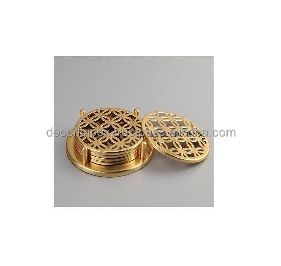ที่รองแก้วตัดด้วยเลเซอร์ทองเหลืองไม่เหมือนใครดีไซน์คลาสสิกเป็นมิตรกับสิ่งแวดล้อมสำหรับของขวัญและของตกแต่งโต๊ะ