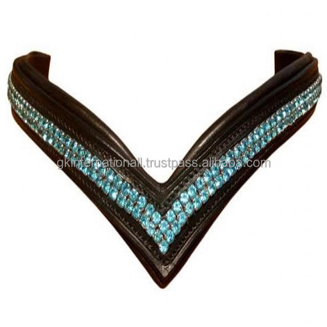 แถบคิ้วที่เป็นเอกลักษณ์สำหรับม้าสายรัดคิ้วคริสตัลบลิงสีฟ้าสีน้ำตาลสีดำสีดำหนังอังกฤษแบบสั่งทำได้สำหรับม้า