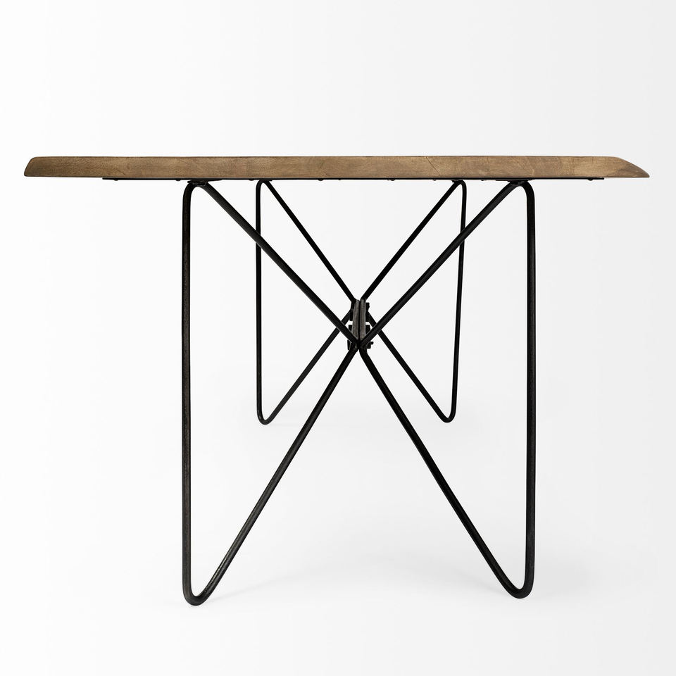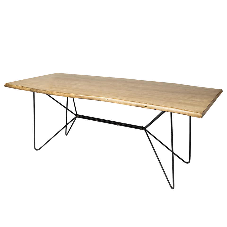 โต๊ะอาหารครัว 6 ที่นั่ง ท็อปไม้อะคาเซียขอบธรรมชาติ โครงเหล็กทรงปีกผีเสื้อเคลือบสีดำด้าน
