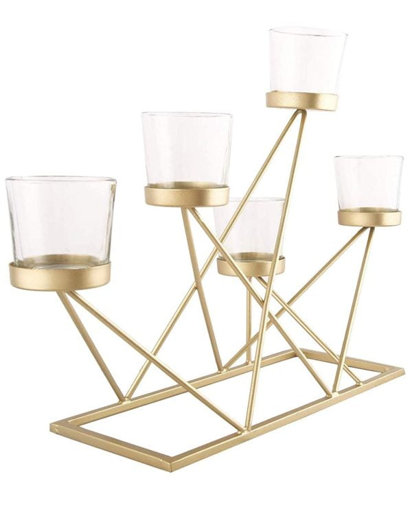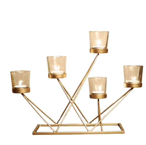 เชิงเทียนที่ไม่ซ้ำกันกับ5แก้วสีทองหรือหลายสีที่กำหนดขนาดสำหรับงานแต่งงานบ้านและการตกแต่งเทศกาล