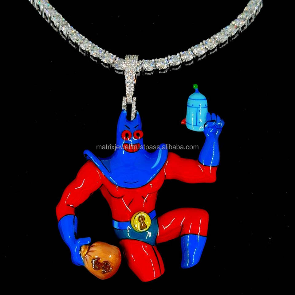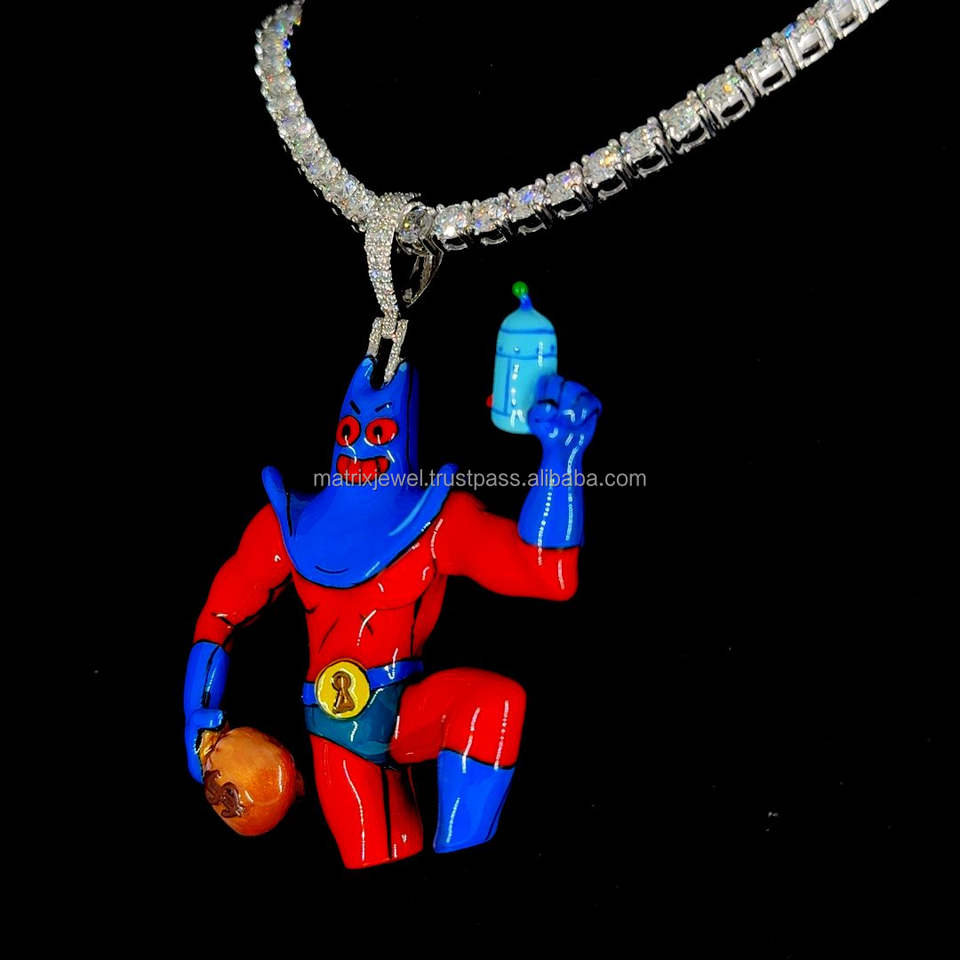 จี้3D การ์ตูนสำหรับเด็กสีเงิน925เคลือบสีแดงจี้ซูเปอร์ฮีโร่สไตล์ฮิปฮอปเคลือบสีเคลือบ