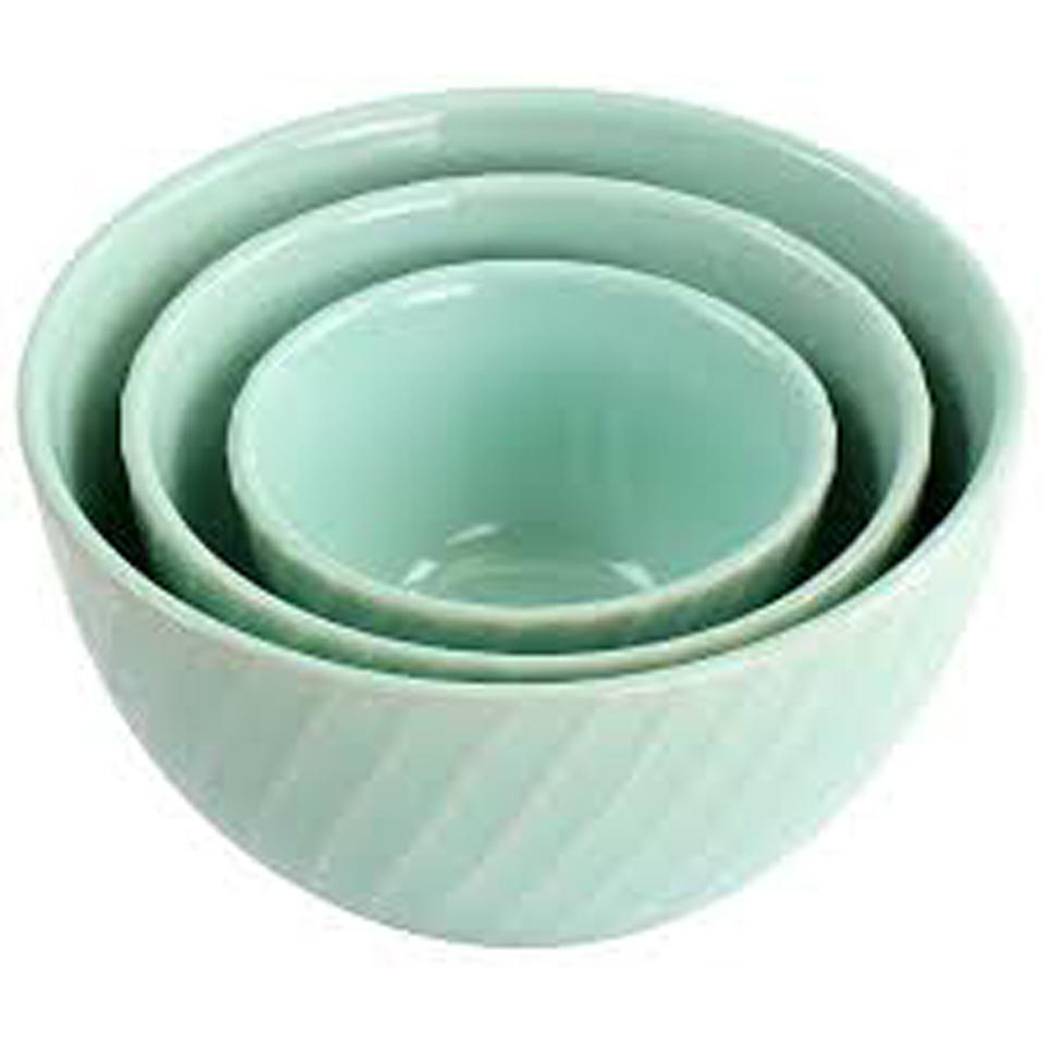 ชุดชามเซรามิก3ชิ้นแบบคลาสสิกไม่เหมือนใครสำหรับบ้านโรงแรมและร้านอาหารชามเสิร์ฟช็อคโกแลตสีเขียวทรงกลม