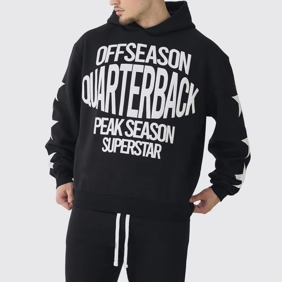 ชุดวอร์มพิมพ์ลาย DTG สีสันโดดเด่น ดีไซน์ใหม่ล่าสุด สำหรับผู้ชาย เนื้อผ้าหนา ผลิตจากโรงงาน พิมพ์ลายนูน ล้างสีแบบ Acid Wash