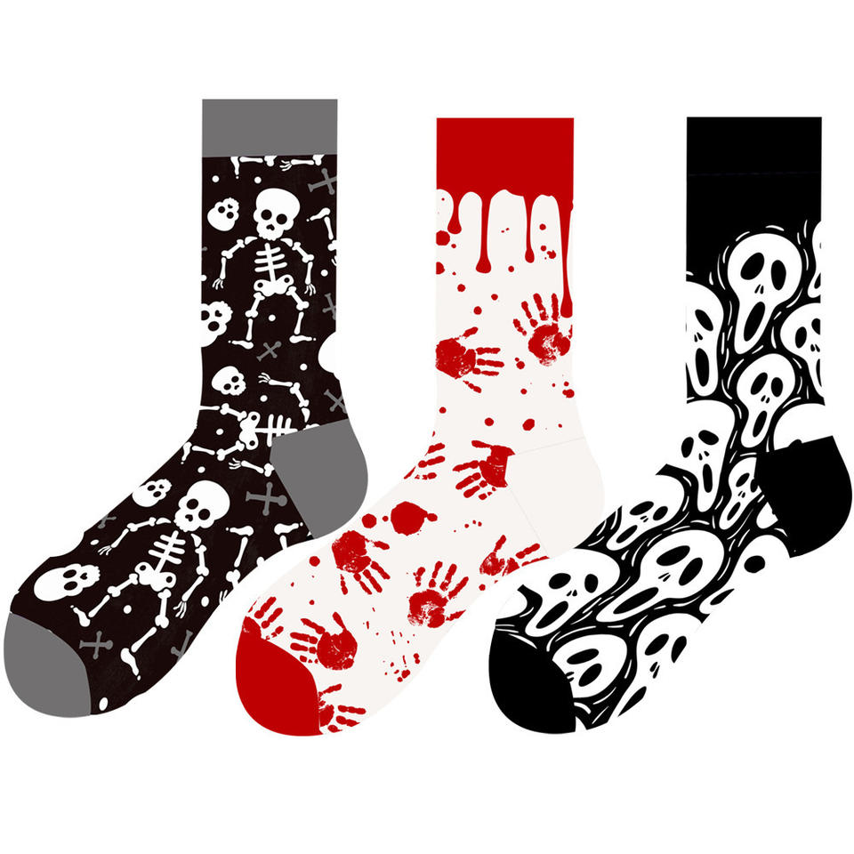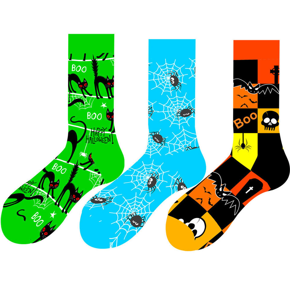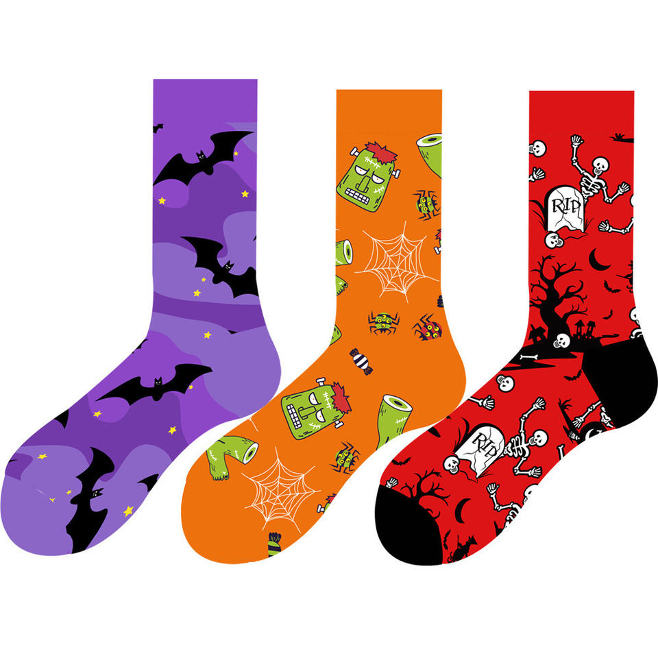 ถุงเท้าผ้าคอตตอนนำโชคใส่ได้ทั้งชายหญิงถุงเท้าฮาโลวีนน่ารักแปลกใหม่สีสันสดใสสำหรับวันหยุดถุงเท้าทีมค้างคาวฟักทอง