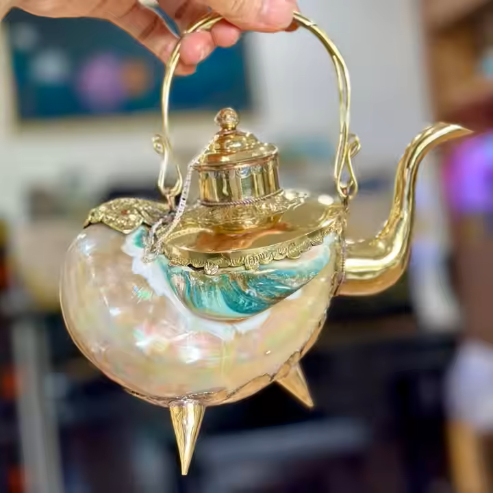 กาน้ำชาเปลือกหอยเปลือกหอยที่เป็นเอกลักษณ์สวยงามทำจากเปลือกหอยหอยทากทะเลจริงสำหรับจัดแสดงตกแต่งบ้านและคอลเลกชันงานศิลปะ