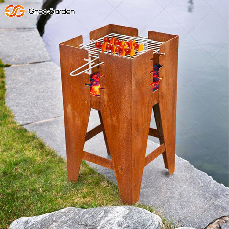 ที่จุดไฟเตาย่างบาร์บีคิวในสวนแบบพรีเมี่ยมสุดพิเศษมีเอกลักษณ์ในสวนพร้อมรถเข็นสำหรับย่างบาร์บีคิวสำหรับสวนหลังบ้านเผาไม้