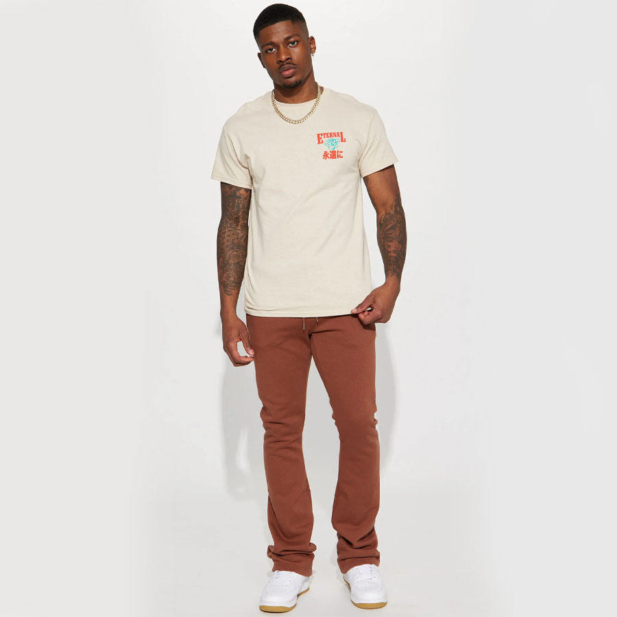 กางเกงวอร์มขาบานของผู้ชายสินค้าออก2023พร้อมเอวกลางเอวยางยืดและกระเป๋าสไตล์เรียบง่ายลำลอง