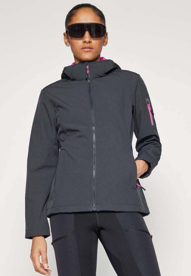 Unique Design Antracite Women Zip Hood Waterproof Softshell Jacket Factory Price Full Sleeves Windproof Running Outdoor Jackets