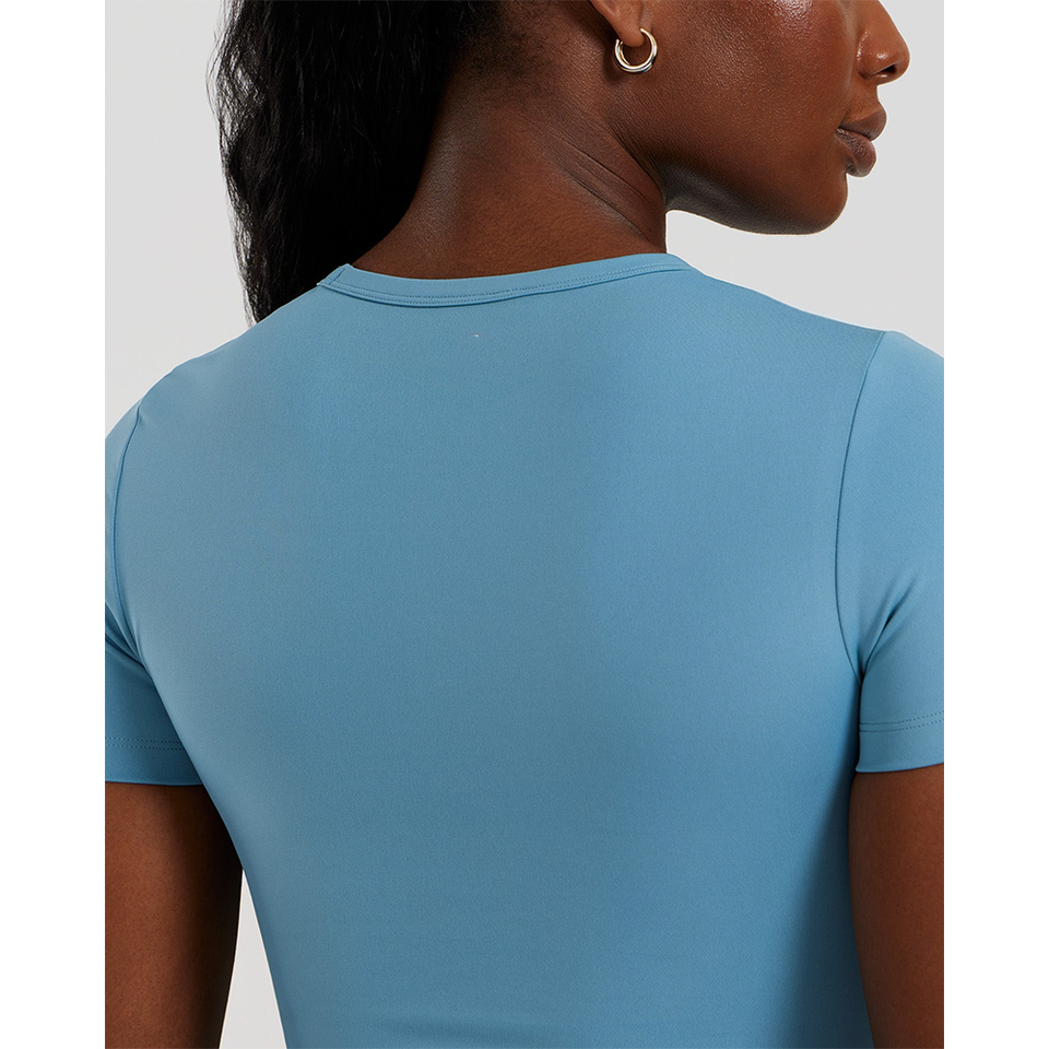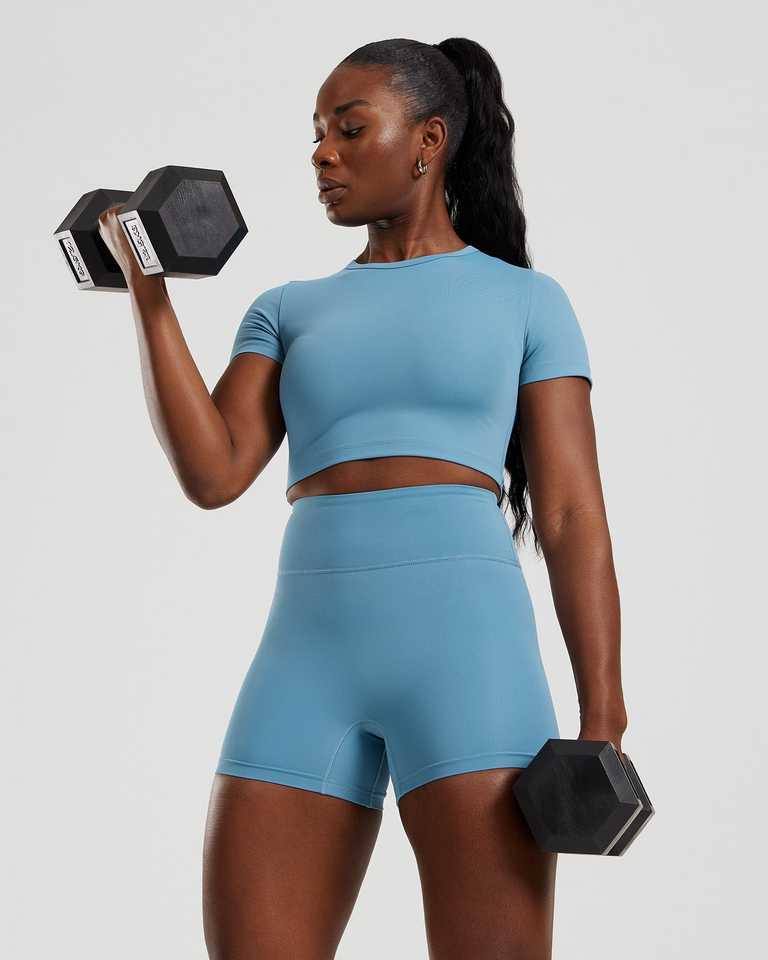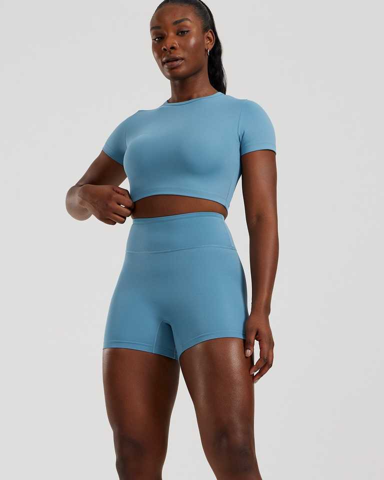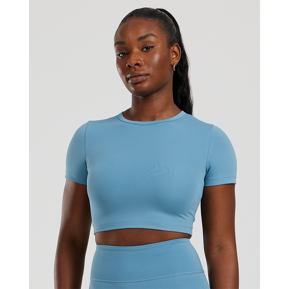 เสื้อครอปสำหรับผู้หญิงเสื้อครอปแขนสั้นลายหินบะซอลต์ดีไซน์เป็นเอกลักษณ์เสื้อยืดออกกำลังกายเนื้อนุ่มน้ำหนักเบา
