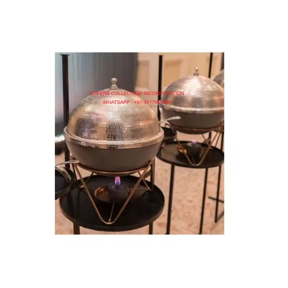 ชุดจานอุ่นอาหารสแตนเลสพร้อมถาดอุ่นอาหารสำหรับโรงแรมและงานแต่งงานการตกแต่งด้วยสีเงิน