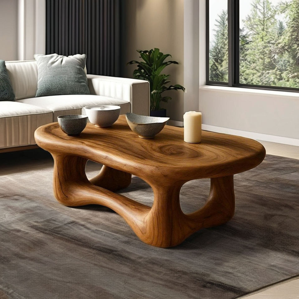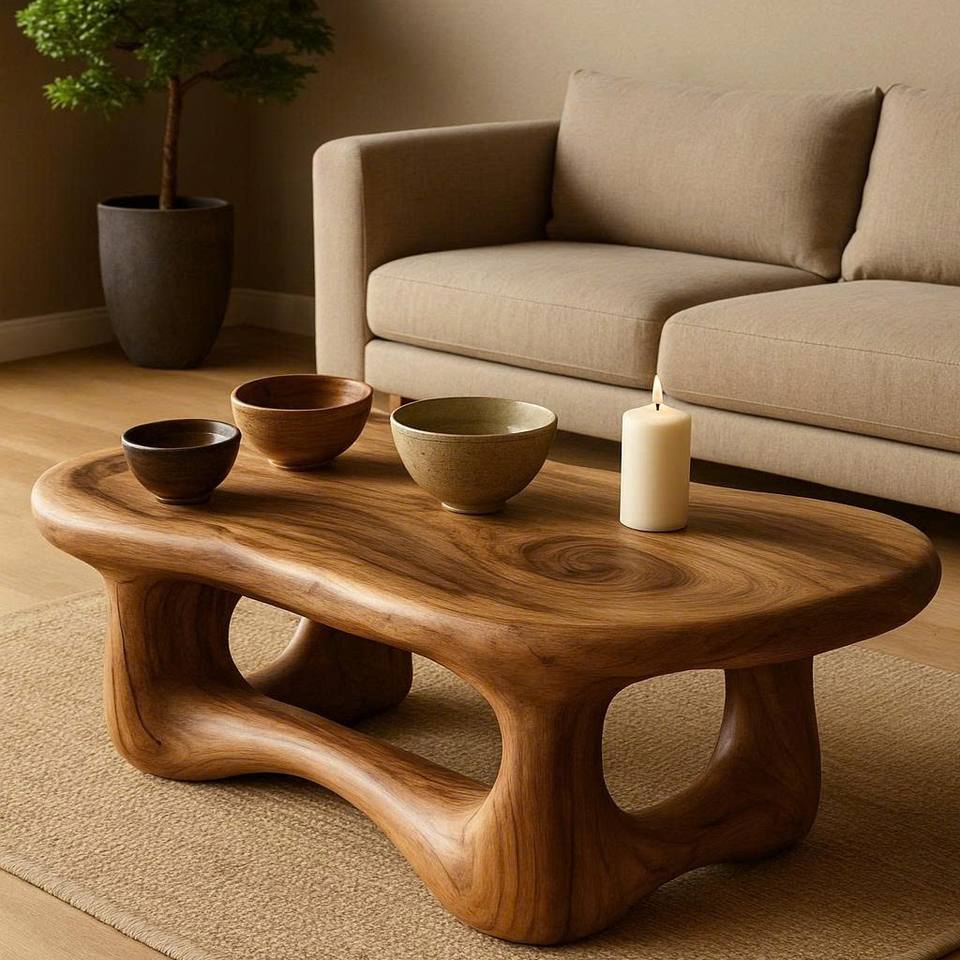 โต๊ะกาแฟดีไซน์ไม่เหมือนใครรูปปั้นไม้ขอบสดโต๊ะกลางทำจากไม้ธรรมชาติทำด้วยมือของตกแต่งบ้าน