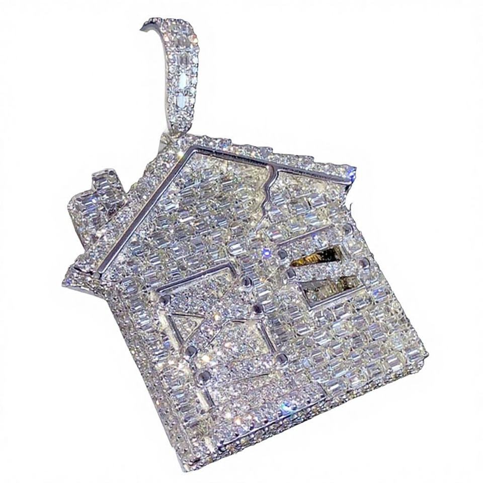 จี้เงินแท้ 925 ชุบทอง 18K ดีไซน์เฉพาะตัว สไตล์ฮิปฮอปหรูหรา ประดับเพชรโมอิสซาไนต์ทรงบาแกตต์ พร้อมใบรับรอง GCI IDGL