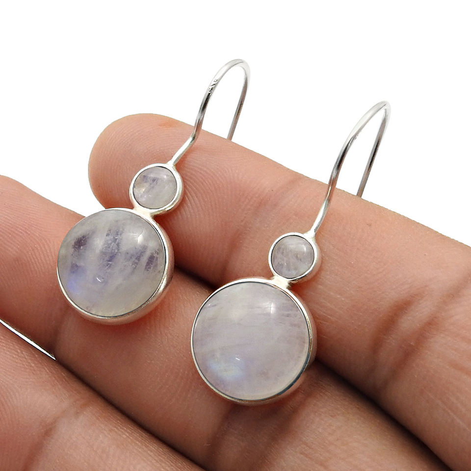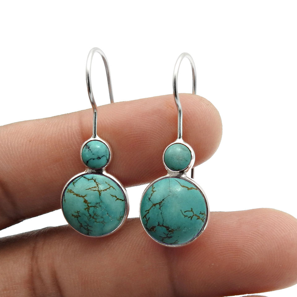 ต่างหูแฮนด์เมดพลอยเทอร์ควอยซ์ธรรมชาติสองชั้นดีไซน์ไม่เหมือนใครต่างหูเครื่องประดับโบฮีเมียนทำด้วยมือทำ925เงินสเตอร์ลิง