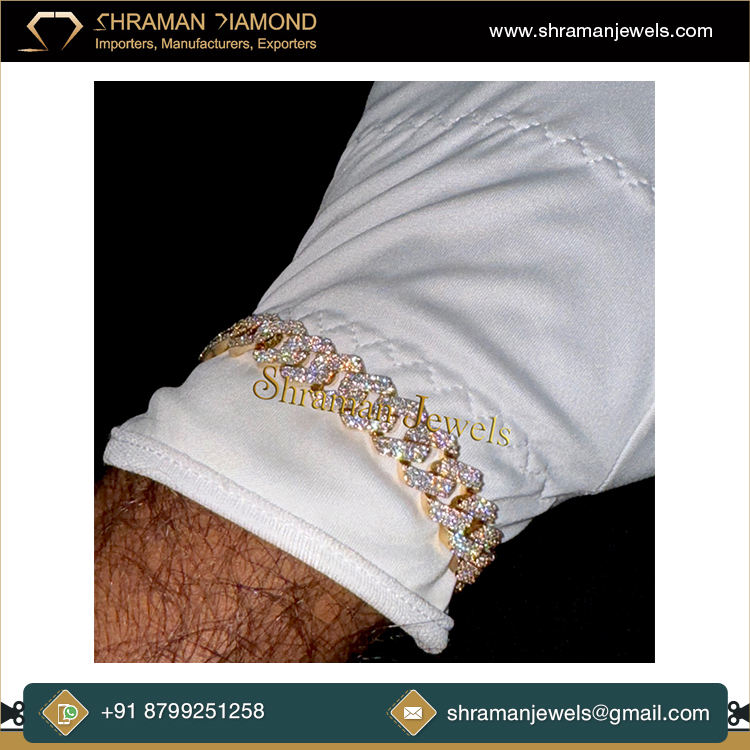 เครื่องประดับที่มีเอกลักษณ์เฉพาะตัว4.82 CTS 925สำหรับผู้ชายสร้อยข้อมือเพชรโมอิสโคไมอามี่เงินแท้แบบคิวบาสร้อยข้อมือขนาด7นิ้วสำหรับเป็นของขวัญ