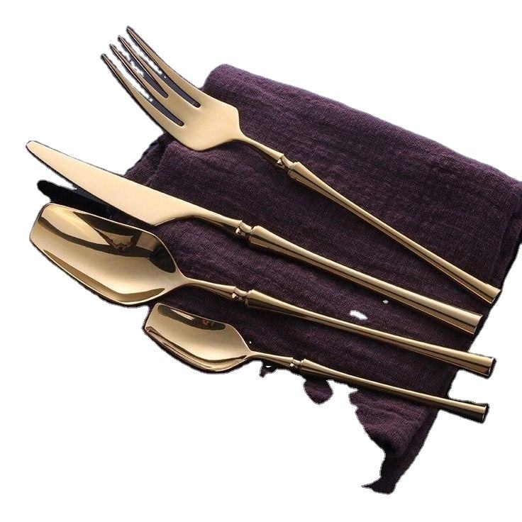 ชุดช้อนส้อมมีดีไซน์เป็นเอกลักษณ์ชุด5ชิ้นมีด้ามจับทองใช้สำหรับอาหาร