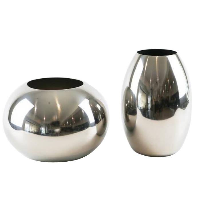 แจกันดอกไม้ทรงสูงสไตล์โมเดิร์นทำจากอะลูมิเนียมเคลือบสีน้ำเงินแบบพาวเดอร์โค้ท ชุดสองชิ้นรูปทรงต่างกันสำหรับโรงแรม