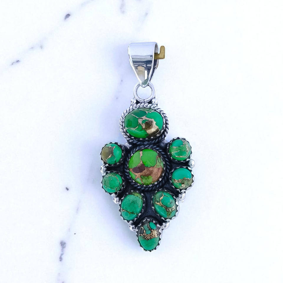 จี้เงินแท้ 925 ดีไซน์เฉพาะตัว สีเขียวทองแดงประดับเทอร์ควอยซ์ พร้อมอัญมณีและเครื่องประดับเงินขายส่ง