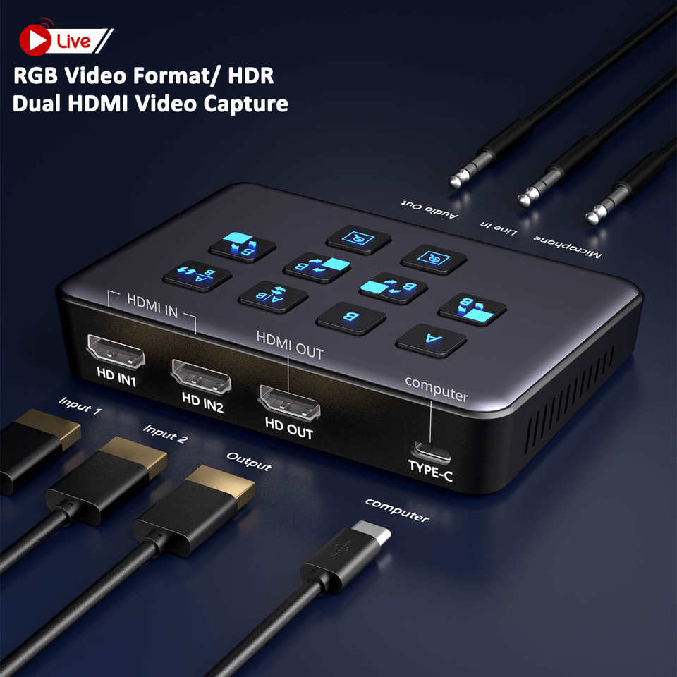 2*HDMI video input, 1*Line in audio input, 1*Microphone audio inputInput