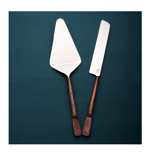 การออกแบบที่ไม่ซ้ํากันที่ทําด้วยมือมีดตัดเค้กโลหะและภาชนะเสิร์ฟชุดมีดตัดเค้กโลหะและเสิร์ฟขายส่ง
