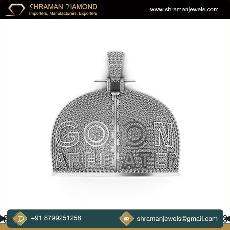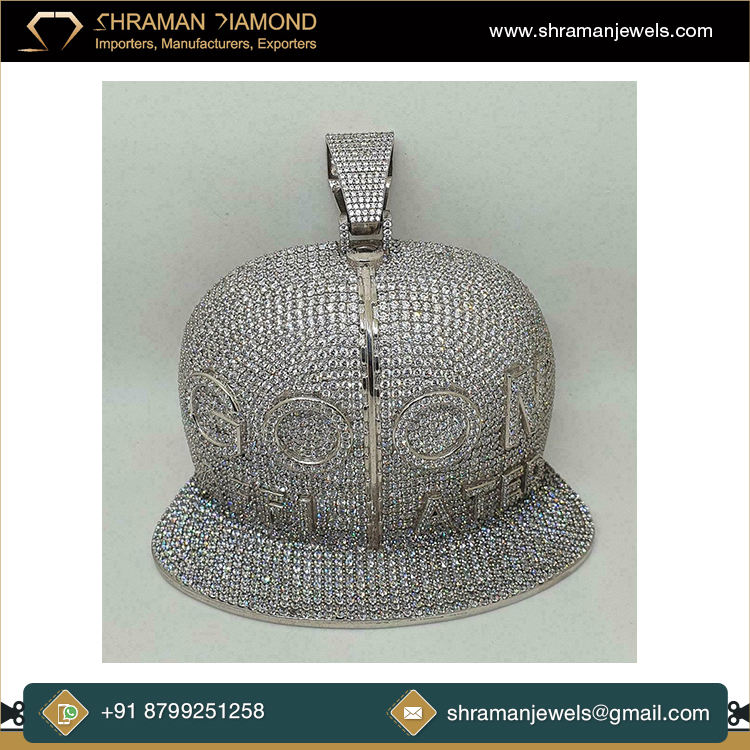 สร้อยคอจิวเวลรี่สุดเท่ทำด้วยมือสุดพิเศษพร้อมจี้เพชรโมอิส925ชุบทองเงินแบบสั่งทำหมวกแก๊ปขนาดใหญ่