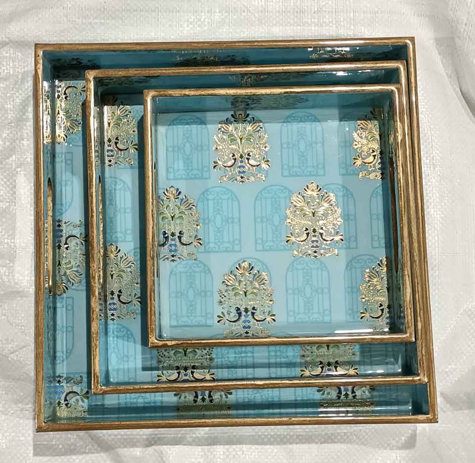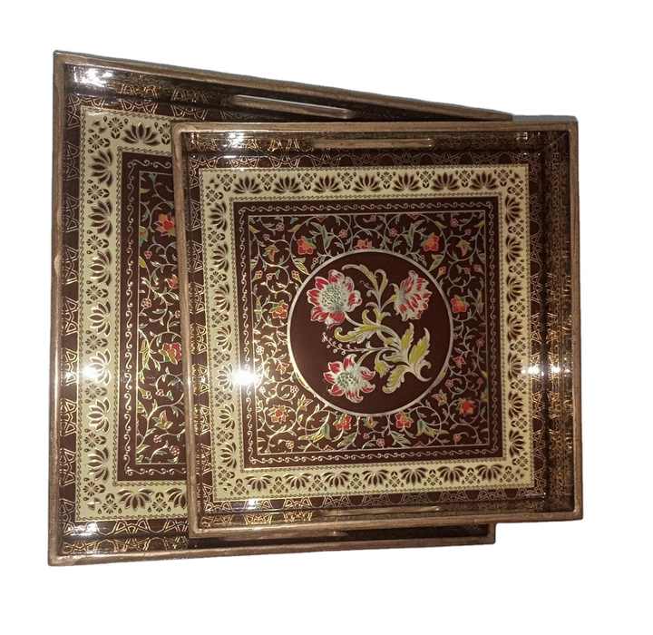 ถาดไม้ตกแต่งบ้านมีด้ามจับทำจากดินเผาสีน้ำเงินเข้มสีทองปรับแต่งได้พื้นผิวยาวอาหารดีไซน์ไม่เหมือนใคร