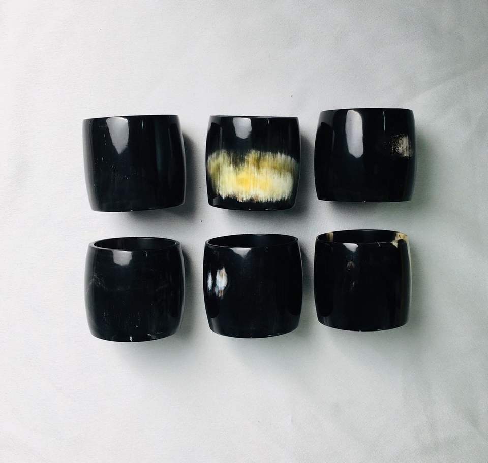 แหวนรองผ้าเช็ดปากและที่ใส่ผ้าเช็ดปากดีไซน์พิเศษสำหรับตกแต่งโต๊ะ ทำจากเขาควายสีดำ สำหรับงานปาร์ตี้ ราคาขายส่ง